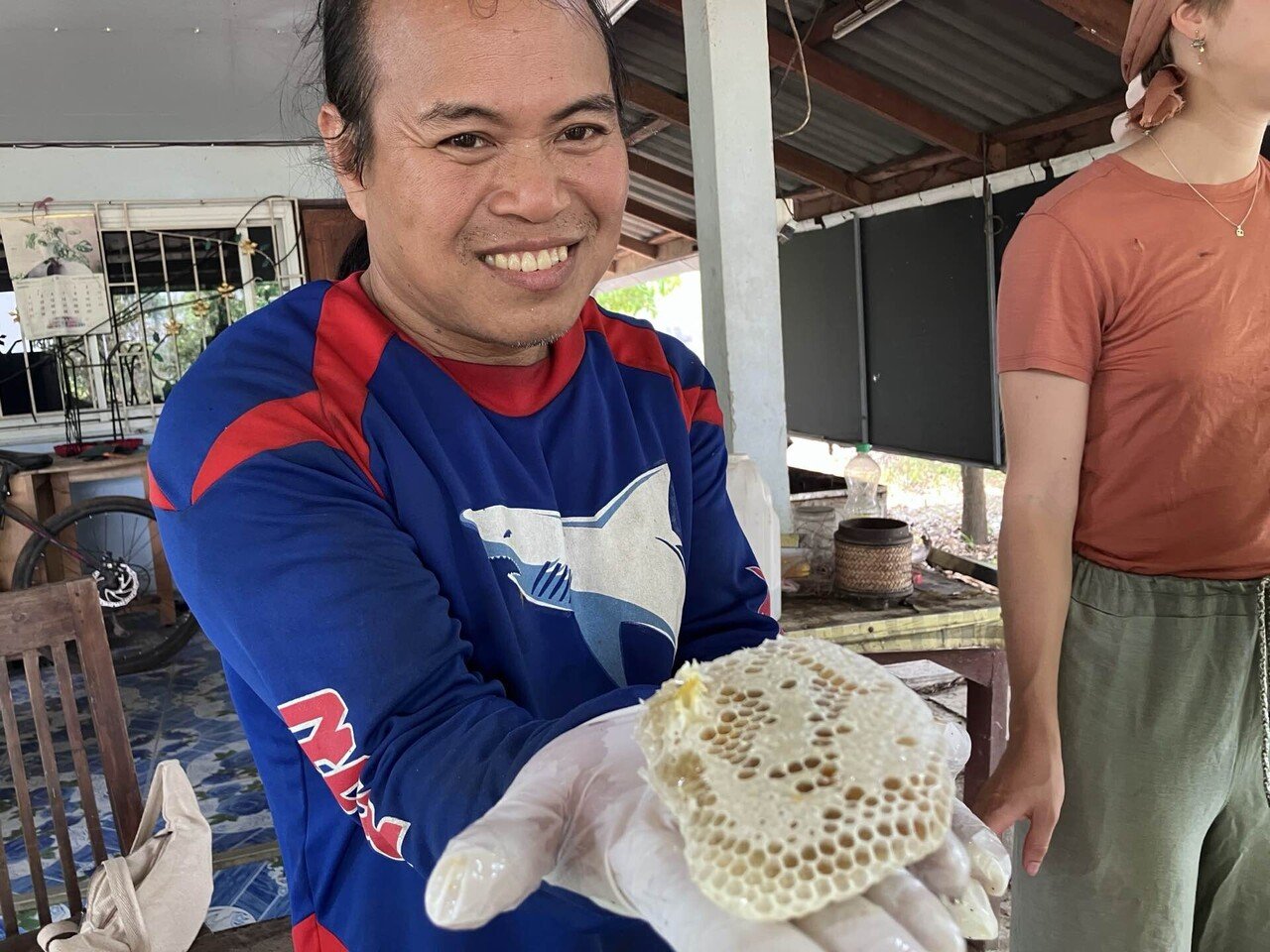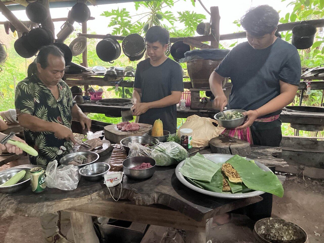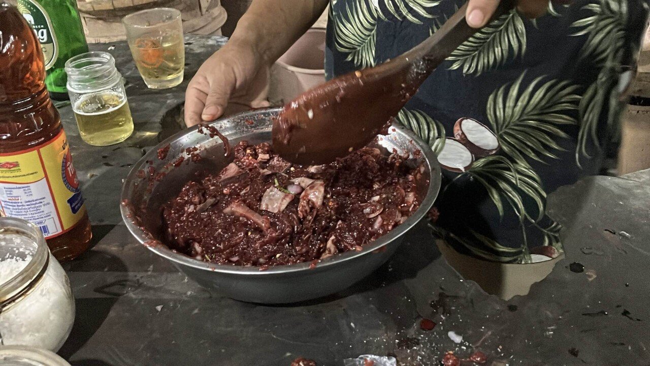 北タイ名物の豚の血も使ったお料理「ラープ」や蜂の巣の丸焼きをいただきましたよ。