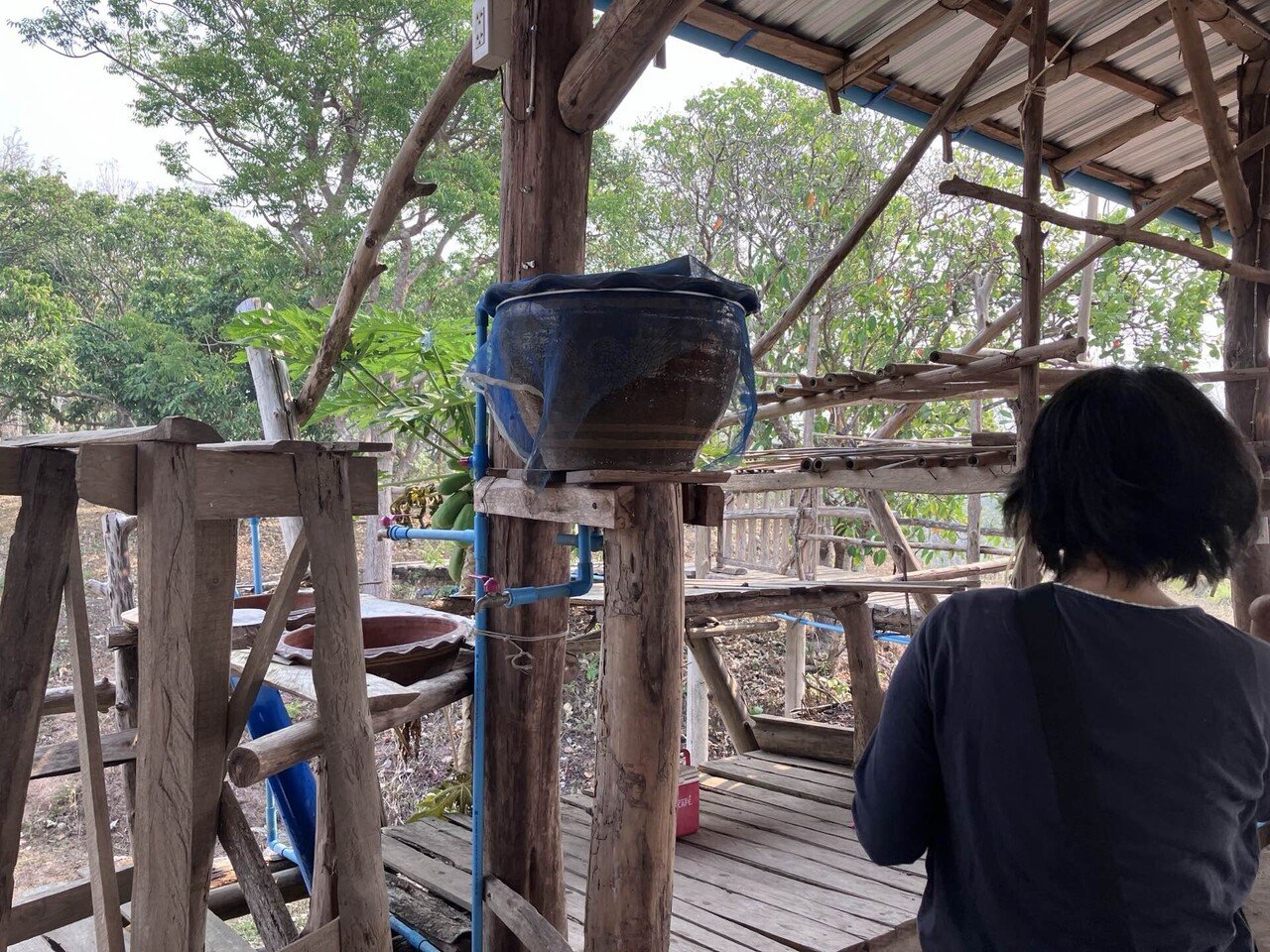 通常は太陽光で水をあげますが、雨が来ない日は井戸からバケツで水をあげます。