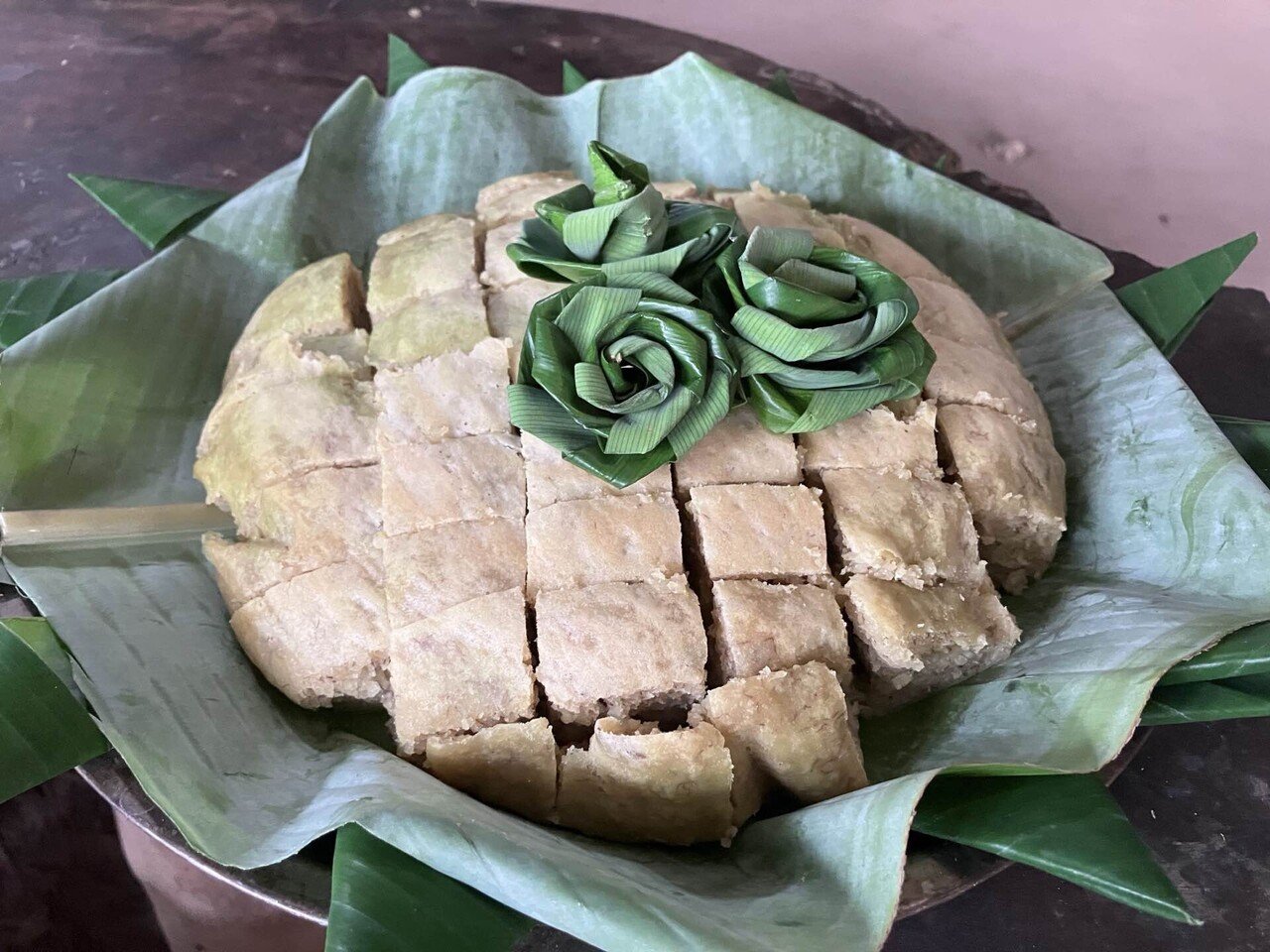 お豆腐はバナナの葉に包んで冷蔵庫でキープされてました。