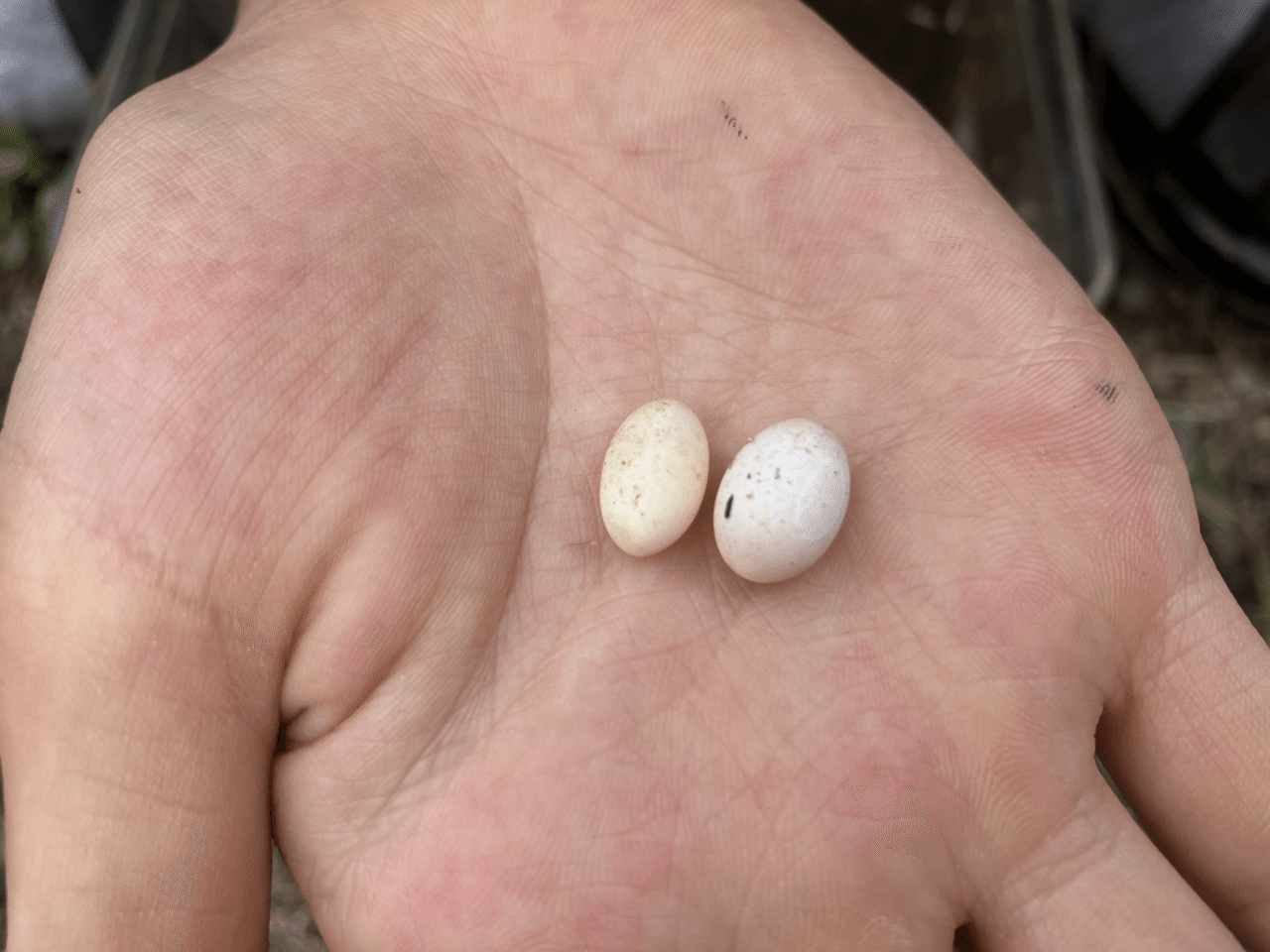 そして少し暖かくなると畑の中から顔を出すカナヘビの卵たち。