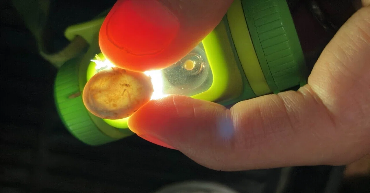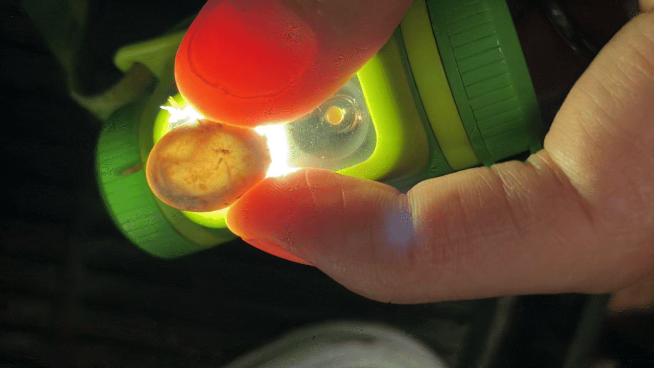 生まれる少し前にライトを当ててやると、胎芽がくるっと動きます。